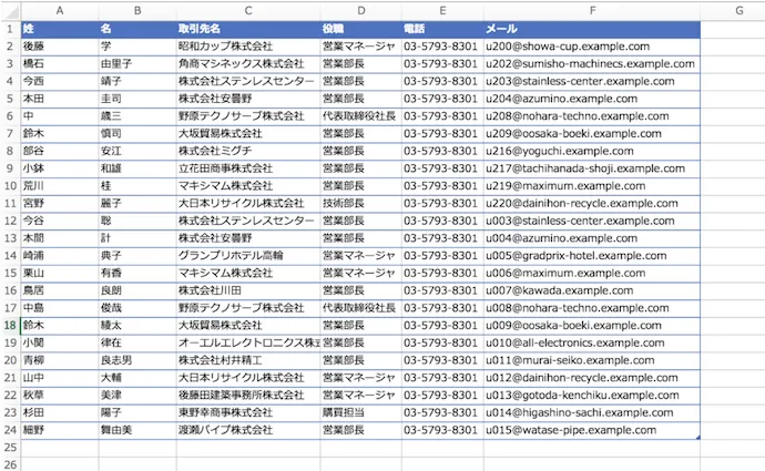 Excelファイルを用意