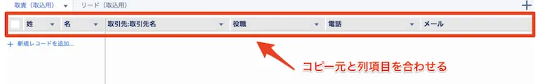 コピー元のExcelと同じ列項目のMashmatrix Sheetを作成します。